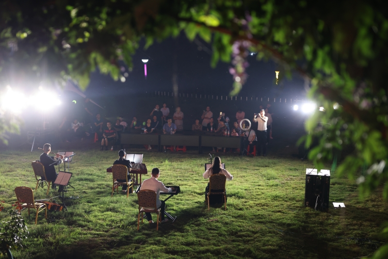 9月7日晚7點(diǎn),夜色剛剛降臨,在風(fēng)景如畫、燈光璀璨的舒城縣曉天鎮(zhèn)方?jīng)_村隨園小墅民宿,一場(chǎng)別具特色的音樂會(huì)拉開帷幕。