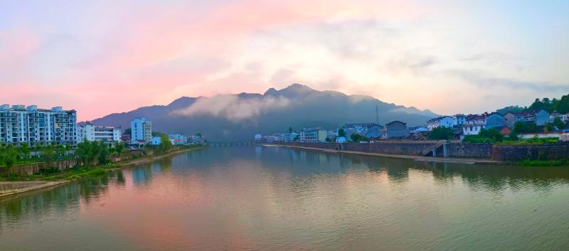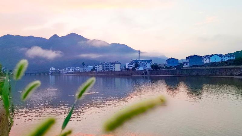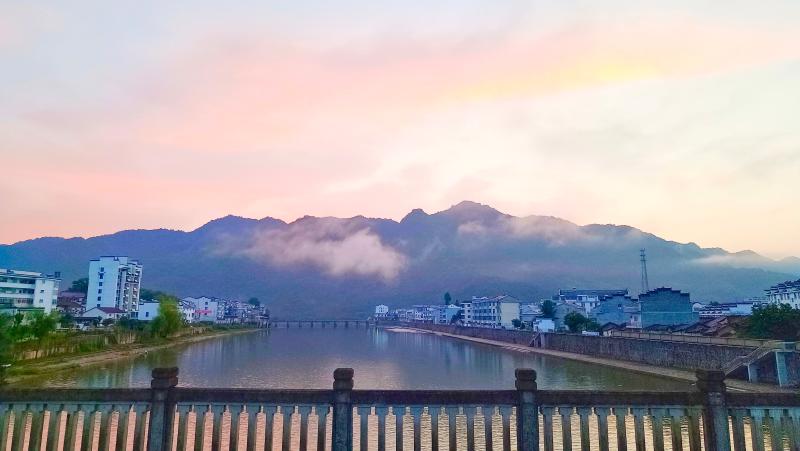6月26早晨,一場雨后,舒城縣曉天河畔云霧繚繞,五彩斑斕,晨光旖旎,美不勝收。(丁文新)