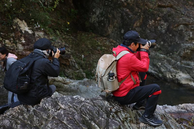本次采風(fēng)活動(dòng)旨在通過攝影家的鏡頭,展現(xiàn)大別山狼谷秋季的迷人風(fēng)光,進(jìn)一步提升景區(qū)的知名度和美譽(yù)度,促進(jìn)鄉(xiāng)村旅游的發(fā)展。攝影家們抵達(dá)狼谷后,立刻被眼前的美景所震撼。他們紛紛舉起相機(jī)、無人機(jī),尋找最佳的拍攝角度。攝影家們穿梭在峽谷之間,時(shí)而駐足于飛瀑旁,時(shí)而攀上巖壁之上,用鏡頭捕捉著每一處動(dòng)人的瞬間。(丁文新)