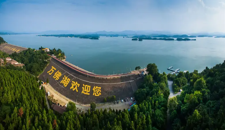 萬佛湖景區(qū)面積135平方公里,湖面50平方公里,庫容9.03億立方米。萬佛湖千米大壩,中夯粘土,外砌石塊護坡,橫空出世,氣勢磅礴,被原聯(lián)合國大壩委員會主席蘭希先生稱贊其為一項“非常了不起”的工程。景區(qū)已建成徽萃山林、金海岸、桃花島、燕子島、萬佛島、新四軍皖西革命紀念館等景點,景區(qū)內(nèi)有金水灣、小木屋、在水一方等度假村。萬佛湖已經(jīng)建設(shè)成為集旅游觀光、休閑度假、運動健身、會議商務(wù)以及科普考察于一體的旅游景區(qū)。
