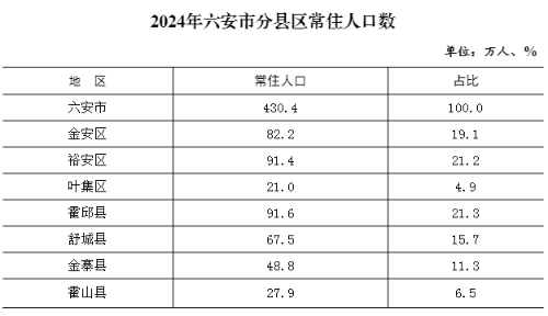 2024年末,全市常住人口430.4萬人,比上年減少3.9萬人,下降0.9%。各縣區(qū)常住人口分布及占比情況如下: