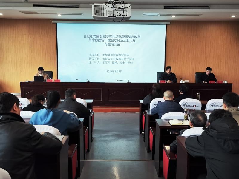 3月6日上午,縣數(shù)管局組織召開合肥都市圈數(shù)據(jù)要素市場(chǎng)化配置綜合改革專題培訓(xùn)會(huì),各鄉(xiāng)鎮(zhèn)、縣直各機(jī)關(guān)及部分企事業(yè)單位首席數(shù)據(jù)官、數(shù)據(jù)專員及數(shù)據(jù)領(lǐng)域從業(yè)人員參會(huì)。縣數(shù)管局黨組成員、副局長胡巧主持會(huì)議,黨組書記、局長龔傳鮮出席并講話,會(huì)議邀請(qǐng)安徽大學(xué)大數(shù)據(jù)與統(tǒng)計(jì)學(xué)院毛軍軍教授、博士生導(dǎo)師到場(chǎng)授課。