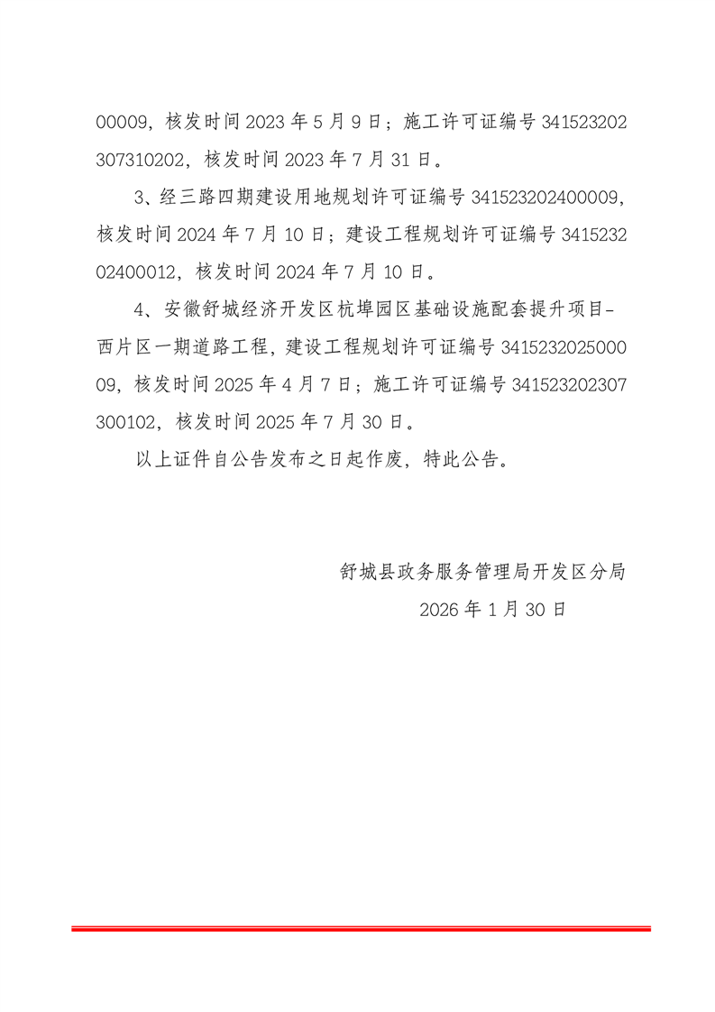 關(guān)于撤銷杭埠鎮(zhèn)經(jīng)三路三期等四個道路項(xiàng)目相關(guān)證件的公告